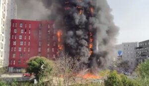 Pamje tronditëse nga Tirana, shkrumbohet nga zjarri fasada e një kompleksi banimi pranë QSUT-së. Evakuohen banorët.