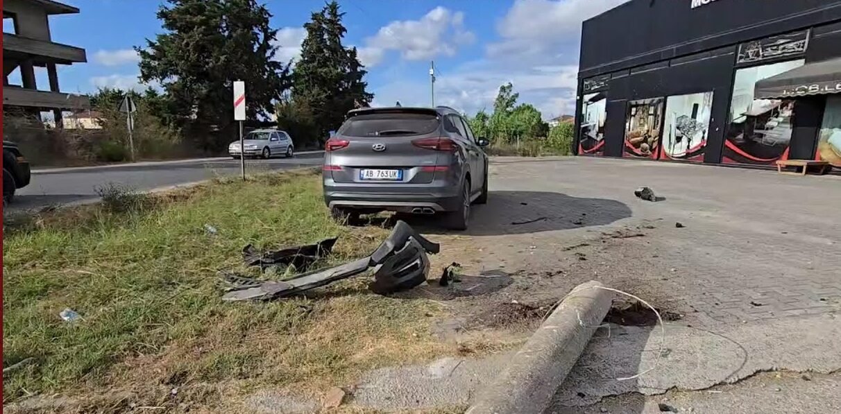 Aksident i fortë në rrugën Fier-Levan, makina përplas shtyllën elektrike dhe plagos shoferin