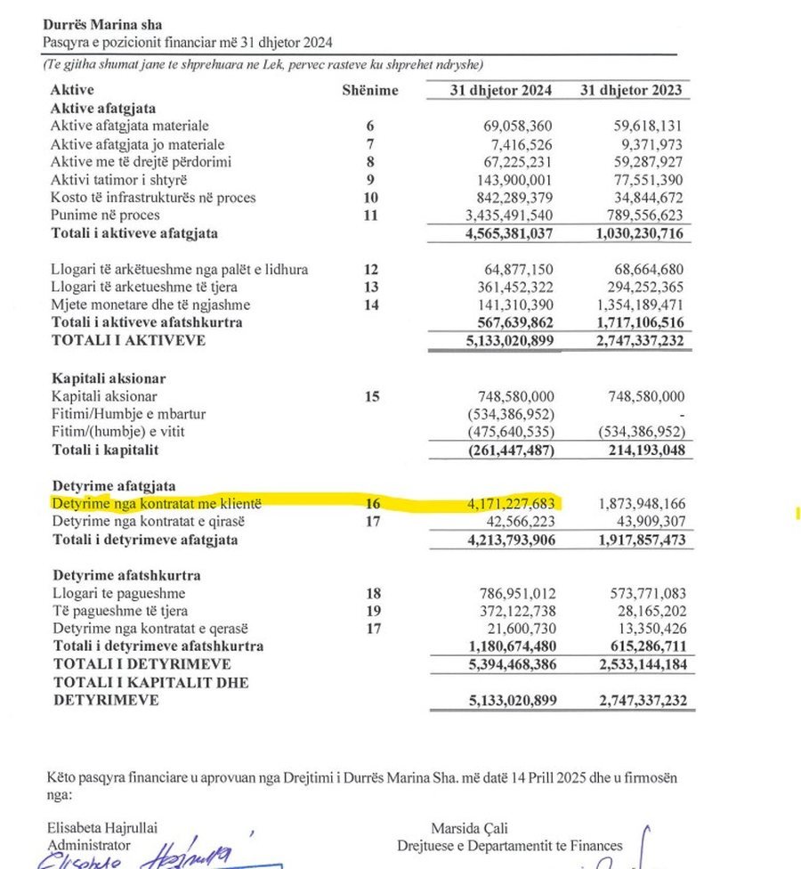 Sipas bilancit zyrtar, 19.2 milionë euro u arkëtuan gjatë vitit 2023 dhe 23.7 milionë euro të tjera gjatë vitit të kaluar, të ardhura që nuk janë njohur ende në pasqyrat financiare pasi do të regjistrohen vetëm me transferimin e apartamenteve tek blerësit.