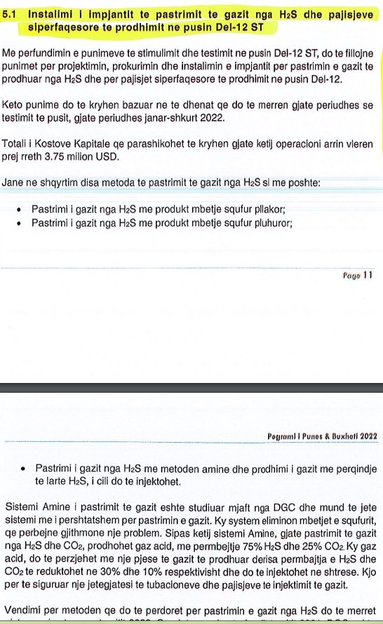 Që nga viti 2022, impianti i pastrimit të gazit ka funksionuar normalisht, sipas standardeve dhe rregullave të parashikuara në kontratë.