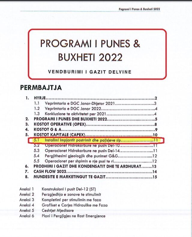 Ndërtimi i impiantit të pastrimit është pjesë e Planit të Punës të “Delvina Gas” për vitin 2022, i miratuar nga “Albpetrol” me vendimin nr.6, datë 2 shkurt 2022, ku Komiteti Këshillimor miratoi buxhetin dhe aktivitetet për vendburimin e Delvinës.