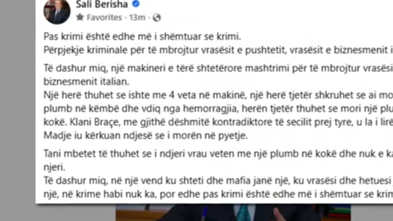 Kryedemokrati Sali Berisha ka reaguar sërish lidhue me vrasjen e biznesmenit italian