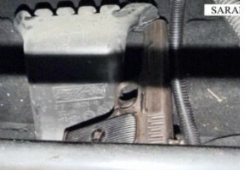Gjatë kontrollit fizik ndaj tij dhe kontrollit në automjet, shërbimet e Policisë gjetën 1 armë zjarri pistoletë dhe një krehër me fishekë për të, të cilat u sekuestruan në cilësinë e provës materiale, bashkë me automjetin.