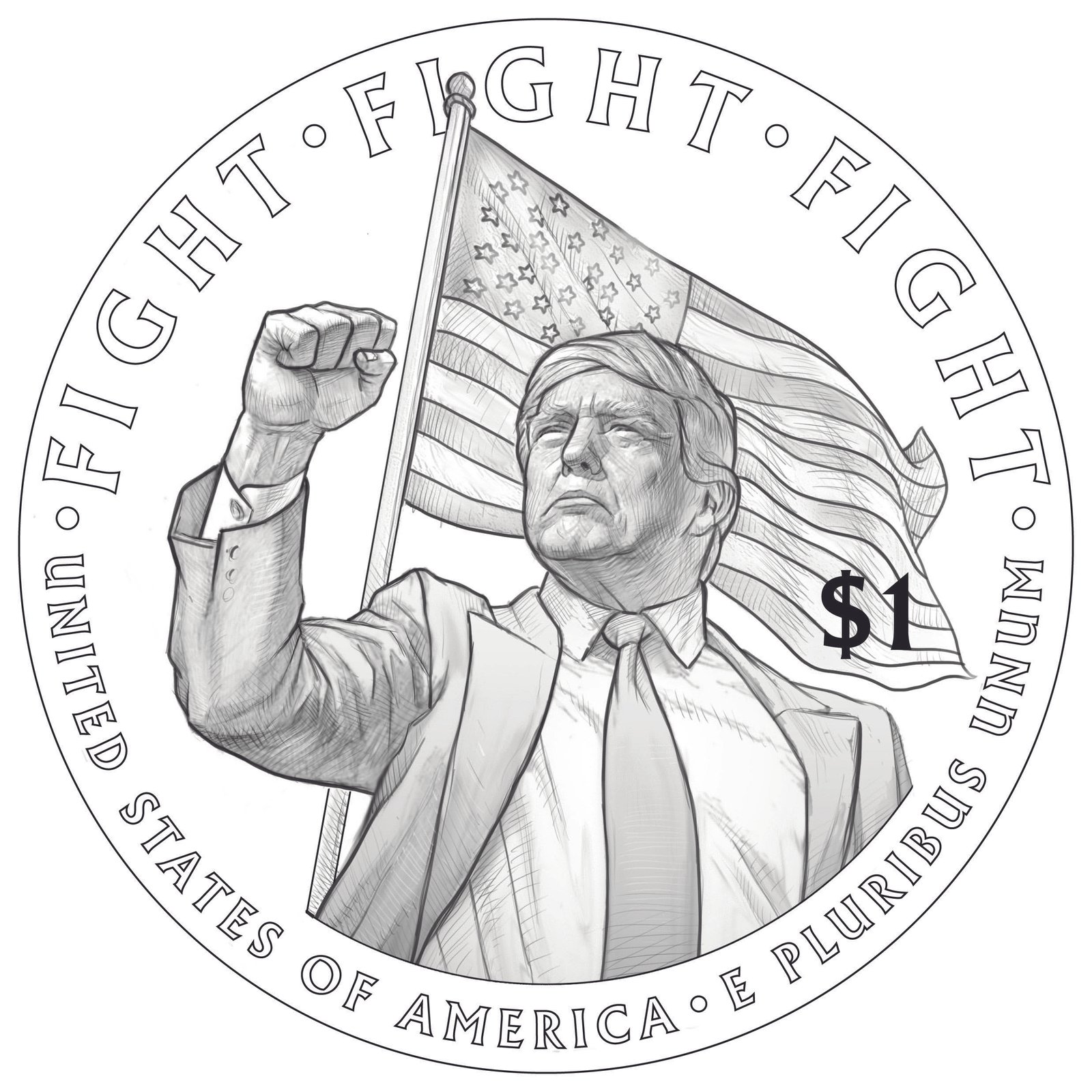 Monedha është menduar si pjesë e festimeve për 250-vjetorin e shpalljes së Pavarësisë së SHBA-së më 4 korrik 2026. Në anën tjetër të monedhës, Trump shihet duke ngritur grushtin me mbishkrimin “fight, fight, fight”, një frazë që ai përdori pas atentatit të dështuar kundër tij në vitin 2024. Në sfond shfaqet flamuri amerikan.
