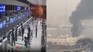 Një video e publikuar së fundmi tregon momentin e shpërthimit në Aeroportin Ndërkombëtar të Dubait mbrëmjen e së shtunës, ku pasagjerë dhe punonjës shihen duke vrapuar në panik drejt daljeve emergjente. Në pamje dëgjohen shpërthime dhe aktivizimi i alarmeve të sigurisë, ndërsa zona përreth përfshihet nga tensioni. Nuk ka ende