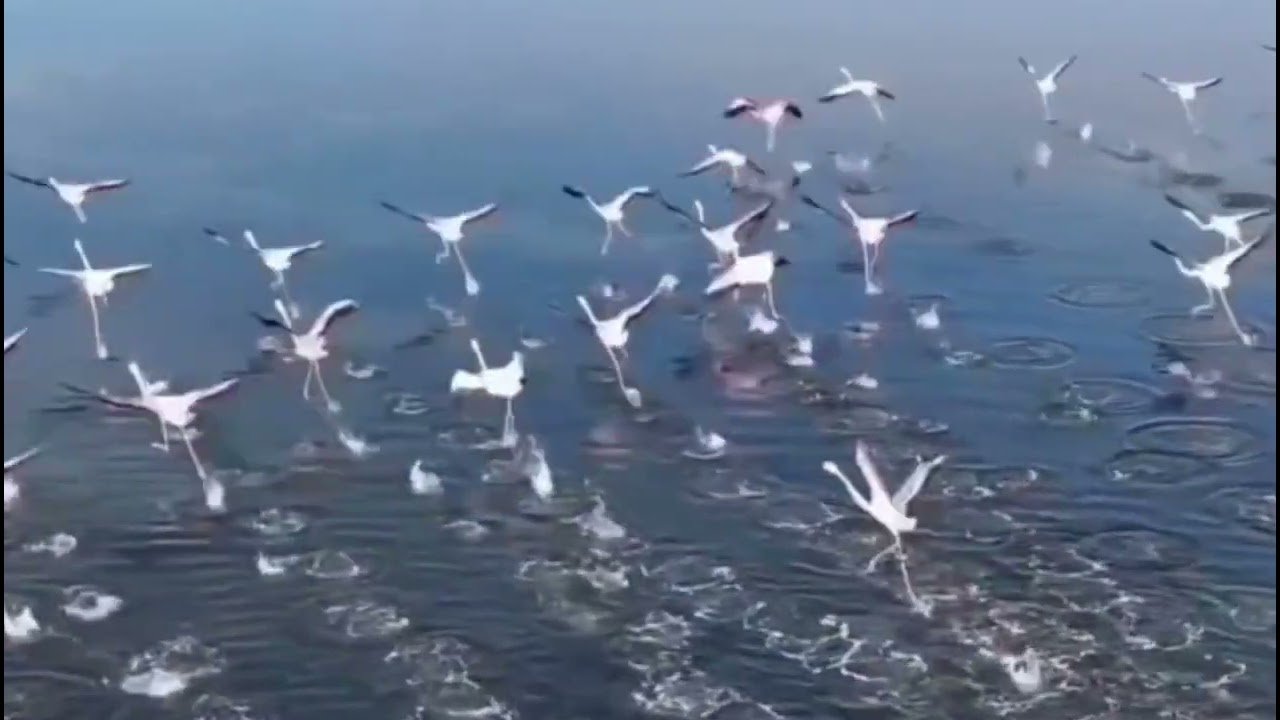 Pamje mahnitëse nga Karavastaja, tufa të shumta flamingosh ndalen në lagunë