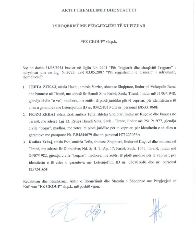 Në tetor 2024, e njëjta kompani përfitoi një tjetër leje ndërtimi në të njëjtën zonë. Pas saj fshihet Fejzo Zekaj, një person me të kaluar kriminale në trafikun e heroinës në Itali, me lidhje nga Bullgaria dhe Turqia.