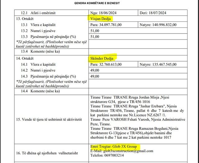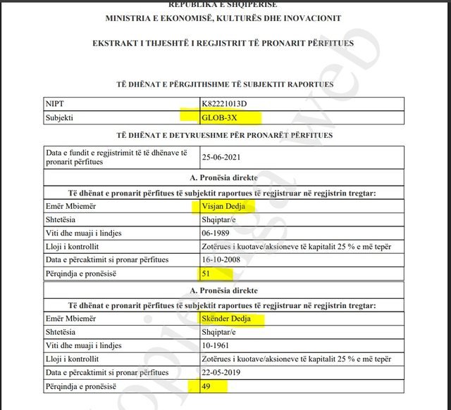 Sipas Qendrës Kombëtare të Biznesit, kompania menaxhohet nga Skënder dhe Visjan Dedja. Skënder Dedja ka qenë themeluesi i subjektit dhe aktualisht zotëron 49% të aksioneve, ndërsa 51% mbahen nga Visjan Dedja.