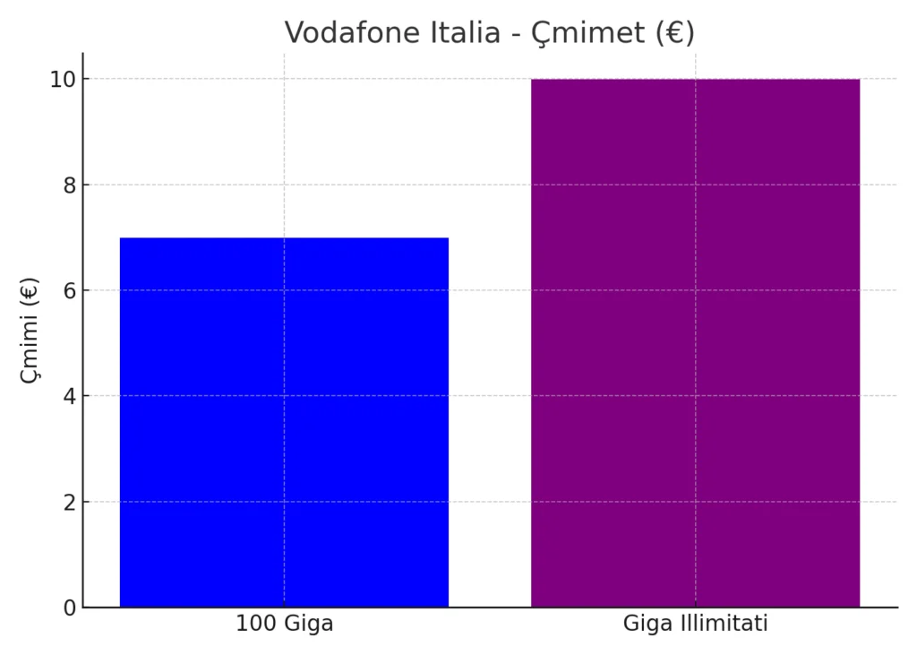 Në Itali, Vodafone ofron gjithashtu paketa me giga të pakufizuara dhe minuta të pakufizuara në çmime konkurruese, si oferta për klientët e rinj nga operatorë të tjerë me 9.99 euro në muaj. Kjo tregon një përkushtim më të madh për ofrimin e shërbimeve cilësore dhe të përballueshme.